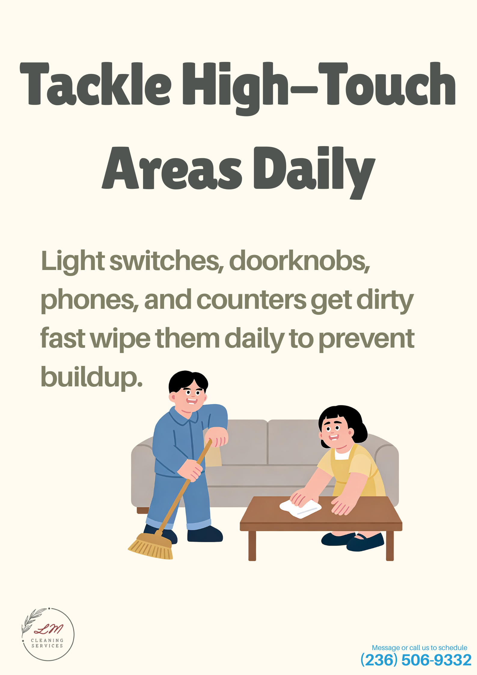 Light switches, doorknobs, phones, and counters are used every day, which means they collect germs and buildup quickly. A quick daily wipe can keep your home cleaner and safer.
